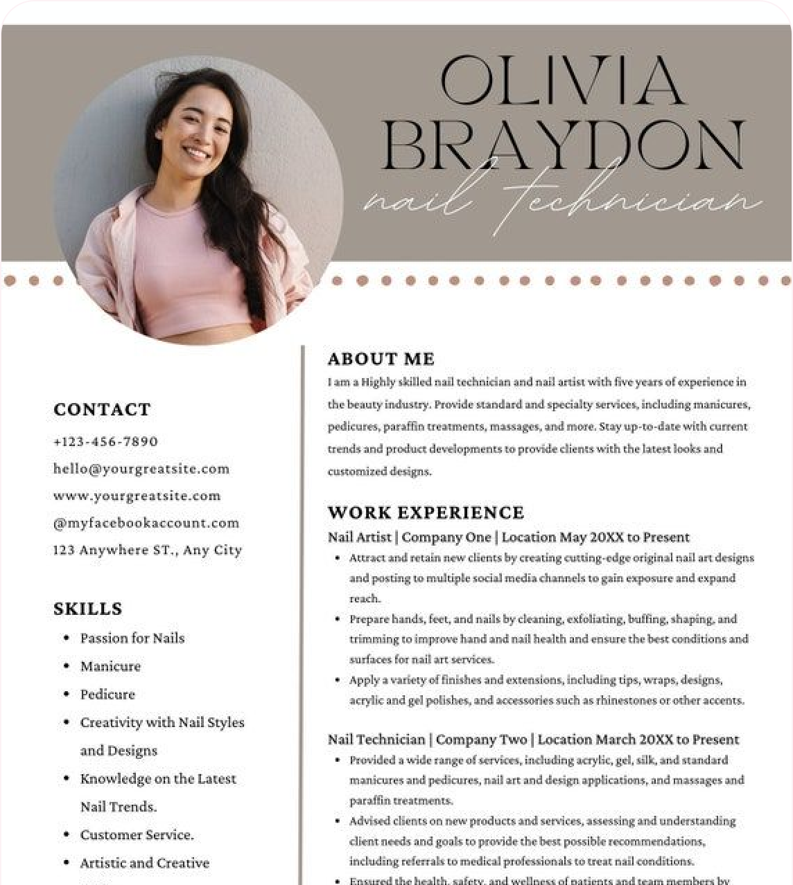 Deneyimlerinizi öne çıkarın: Daha önce çalıştığınız salonları, görevlerinizi ve uzmanlaştığınız işlemleri net bir şekilde yazın.Portfolyonuzu ekleyin: Makyaj, saç, bakım gibi çalışmalarınız varsa görsellerle destekleyin veya Instagram hesabınızı paylaşın.Sade ve düzenli tasarım kullanın: Kalabalık ve karışık CV'ler yerine, okunabilir ve temiz bir düzen tercih edin.